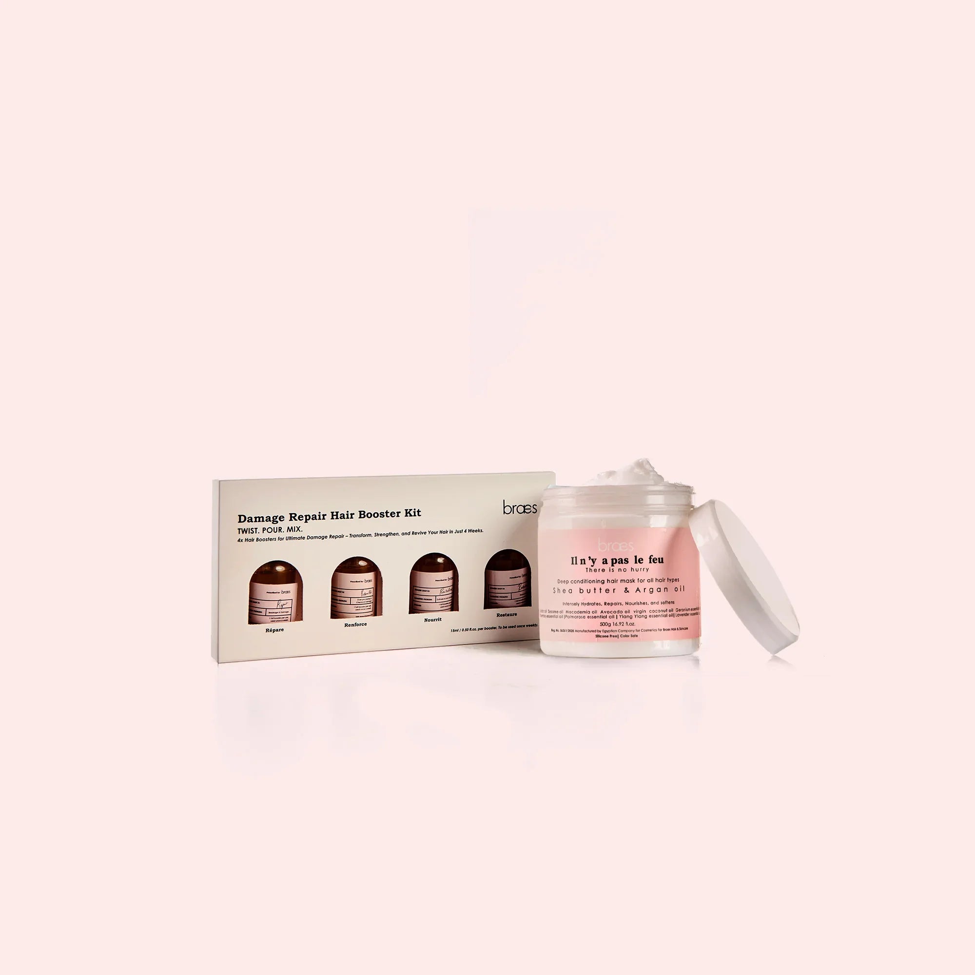 A salon-level repair system designed to bring damaged hair back to life. The Repair & Rebuild Kit pairs our bestselling Deep Conditioning Mask, infused with 13 natural oils for deep nourishment and hydration, with four targeted Hair Boosters — Repair, Rebuild, Revitalize, and Restore — each formulated to address specific hair concerns.
